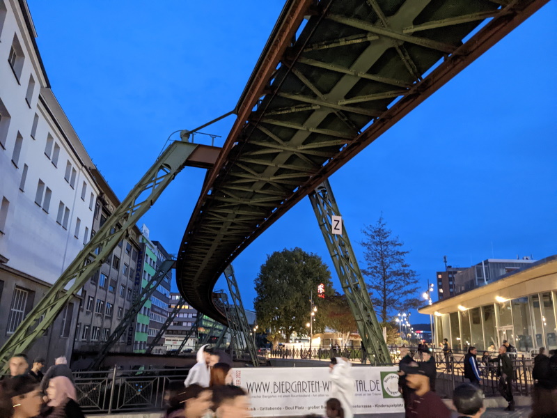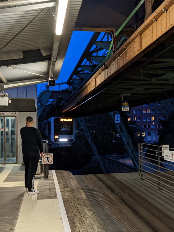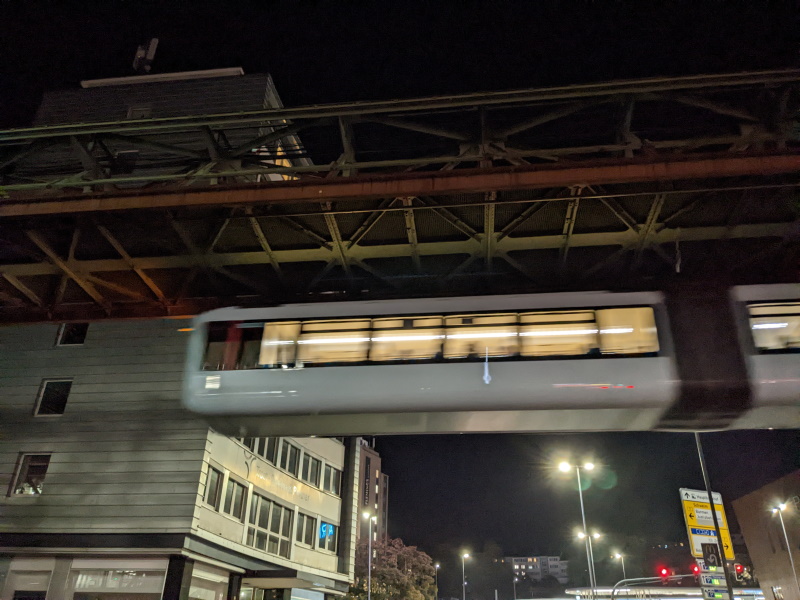 We stayed a night in Wuppertal on our way to Dortmund airport to catch a plane to Plovdiv. We only saw the city in the dark, but we did get to ride the "Schwebebahn" - a hanging tramway. Nothing too exciting, but a nice experience. The train travels along the winding river Wupper that flows through the city. The idea makes sense in using the space above the river which is otherwise lost.